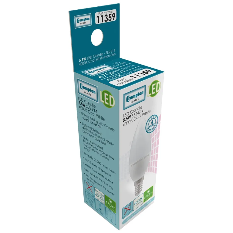 Be the first to review “Crompton Lamps Lamp, LED SES E14, Candle Shape Thermal Plastic, E14 5.5W”